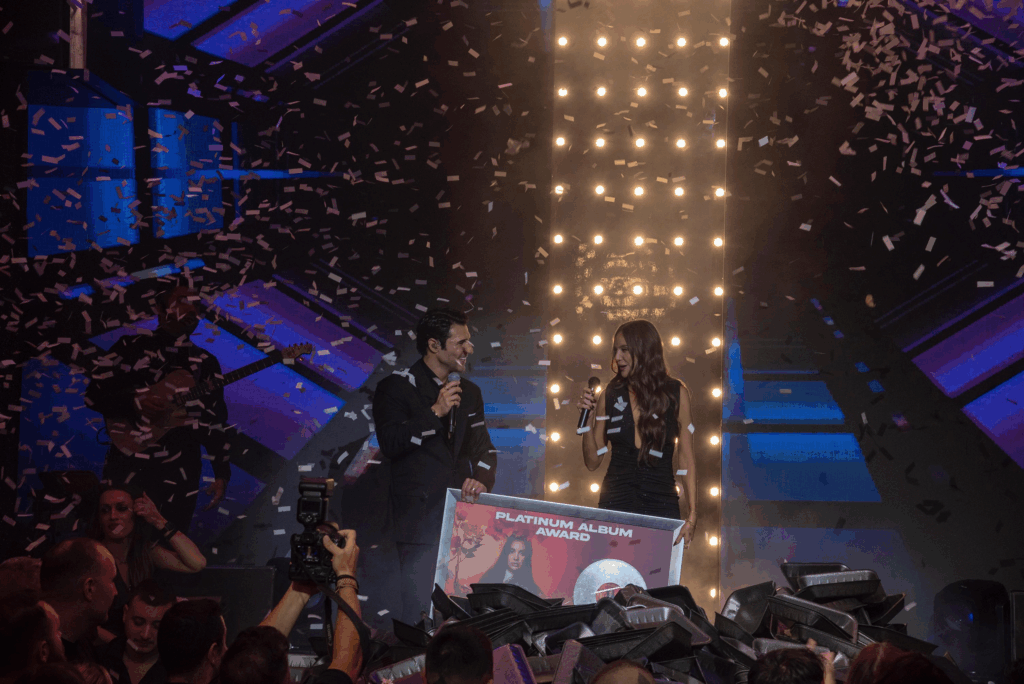 Ο Πέτρος Ιακωβίδης, με πολλή χαρά, βρέθηκε στο ρόλο του παρουσιαστή και κάλεσε τον Γιώργο Αρσενάκο να ανέβει στο stage για να δώσει στην Ρία Ελληνίδου πλακέτα για τις πλατινένιες πλέον πωλήσεις του album «Δύσκολος Χαρακτήρας», το οποίο συνεχίζει να συναρπάζει ασταμάτητα το κοινό εδώ και μήνες, έχοντας συγκεντρώσει πάνω από 90 εκατομμύρια streaming points, με την χαρισματική τραγουδίστρια να συγκινείται και τον κόσμο να την αποθεώνει.«Η Ρία εκπροσωπεί τις stars της νέας εποχής. Έχει απλότητα, χάρη, ηρεμία και όλα αυτά που θέλουμε, χωρίς φιοριτούρες, χωρίς περιτυλίγματα», ανέφερε μεταξύ άλλων ο Γιώργος Αρσενάκος.«Αυτός είναι ο πρώτος μου δίσκος και έγινε πλατινένιος και γι’ αυτό είναι δέκα φορές πιο σημαντικό», είπε η Ρία Ελληνίδου και ευχαρίστησε την Panik, τους δημιουργούς του album, τους μουσικούς και το κοινό.