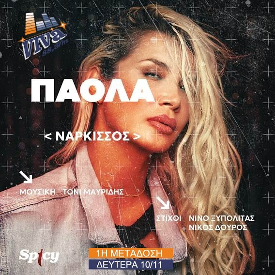 Η Πάολα επιστρέφει δυναμικά με το νέο της τραγούδι «Νάρκισσος», μια δυναμική μπαλάντα σε μουσική του Τόνι Μαυρίδη και στίχους Νίνο Ξυπολιτά και Νίκου Δούρου. Μια συγκλονιστική εξομολόγηση για τον πόνο, τη λύτρωση και τη στιγμή που ξαναβρίσκεις τον εαυτό σου. Ο «Νάρκισσος» είναι το τραγούδι που όλοι θα αφιερώσουν σε εκείνον ή εκείνη που κάποτε τους καθήλωσε, αλλά δεν τους αξίζει πια. Συντονίσου από τη Δευτέρα 10 Νοεμβρίου στον VIVA 88,3 και άκουσέ το πρώτος σε αποκλειστική μετάδοση!Κυκλοφορεί από τη Spicy Music!