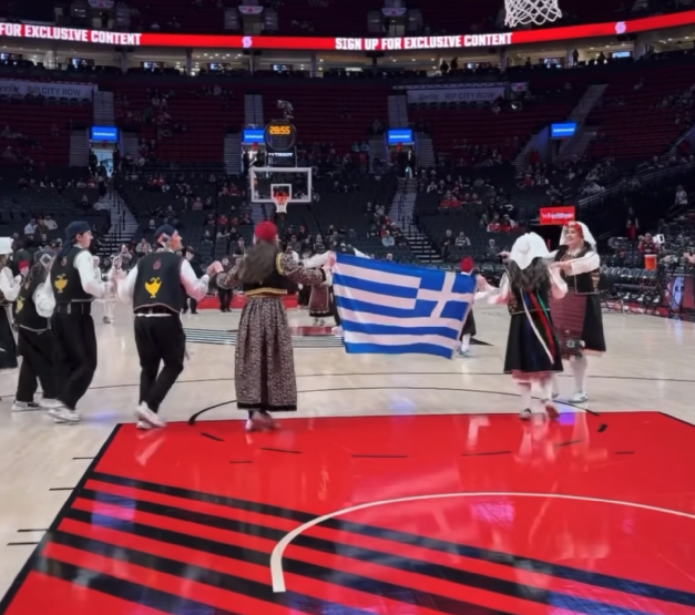 Στο πρόσφατο παιχνίδι των Portland Trail Blazers απέναντι στους Milwaukee Bucks στο Moda Center, οι φίλαθλοι έγιναν μάρτυρες μιας ξεχωριστής στιγμής με έντονο ελληνικό στοιχείο.Κατά τη διάρκεια του ημιχρόνου, ακούστηκε το τραγούδι «Για την Ελλάδα» της Αναστασίας, δημιουργώντας μια συγκινητική ατμόσφαιρα που «έντυσε» το παιχνίδι με ελληνικό χρώμα. Την ίδια στιγμή, χορευτές με παραδοσιακές ελληνικές στολές μετέφεραν την παράδοση της Ελλάδας στο παρκέ.